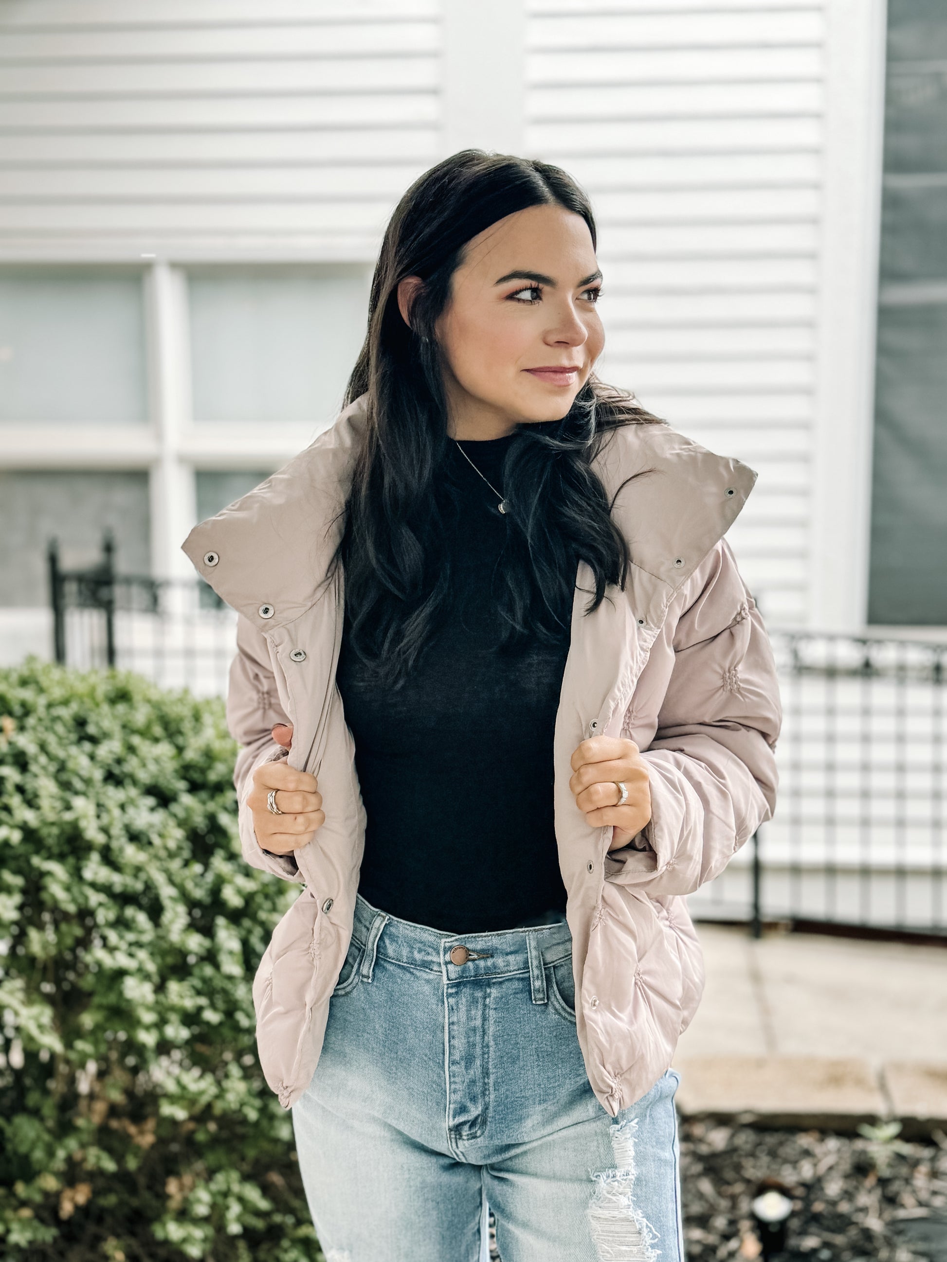 Stay warm and stylish with our Rosie Puffer Jacket. Its vibrant rosy color and cozy quilted design offer both comfort and elegance. Perfect for chilly days, this jacket is a winter wardrobe essential.