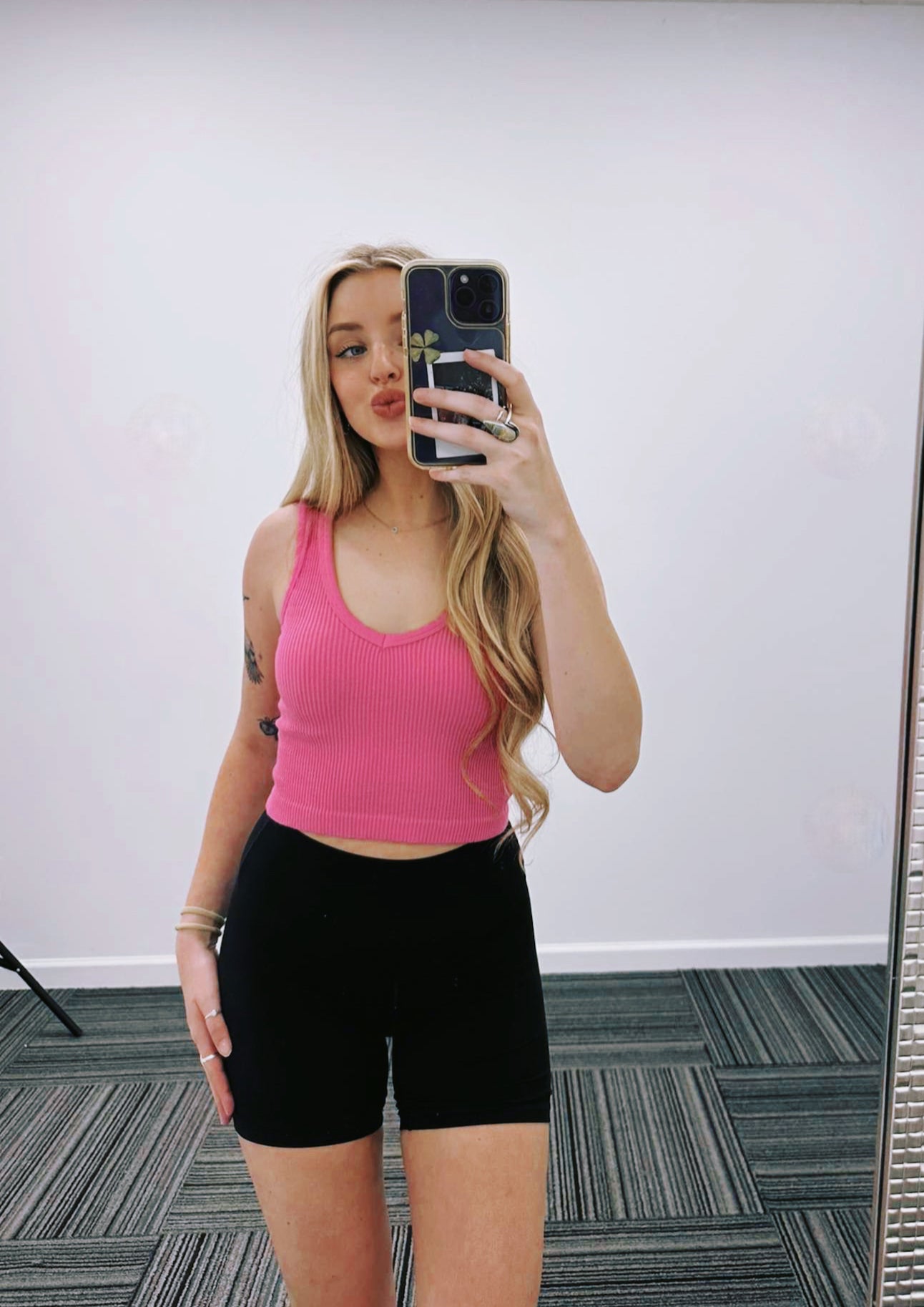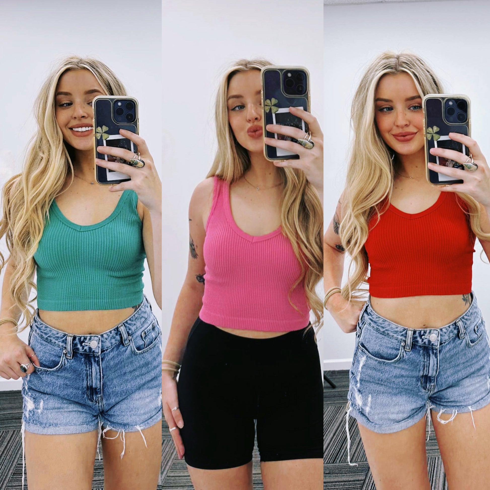Our Ruthie Tank are so versatile. Wear with your fav denim or your fav gym wear! Ribbed Material, Sweat proof, & Cropped fit.